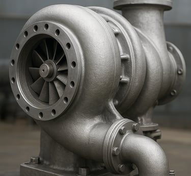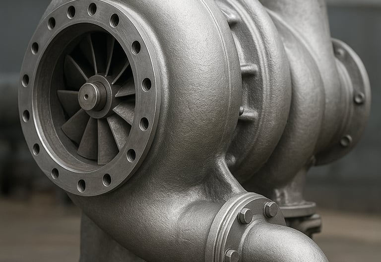 Large turbochargers are used in the marine industry, power generation, and heavy machinery.